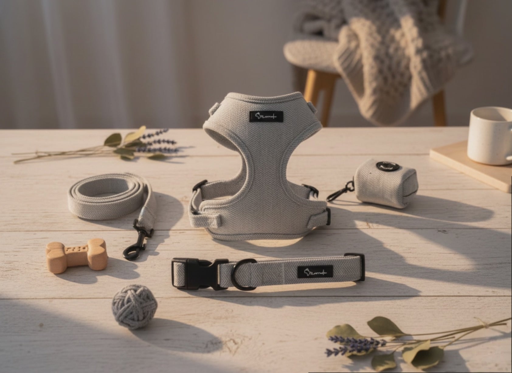 Geschirr mit weicher, gepolsterter Neoprenbasis , bezogen mit einem tweedartigen Finish , das für eine elegante und unverwechselbare Textur sorgt.